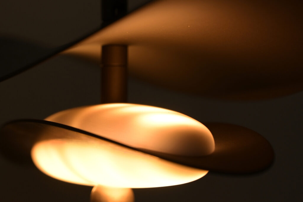 而關於意境是種感受,那是燈光之所以成為空間裝飾的點睛之筆的緣故。舉例說,辦公室裡的冷白光讓人神經緊繃與專注,反之,咖啡廳裡的黃光帶來一種身心軟暖與放鬆,單單一個色溫的差異,就可以創造極大的氛圍距離。透過光來傳達意境,我們將蘇菲SUFI的光源設計於燈體上方雙向發光,一種天地人間的承接與流淌,光源隱身於燈環內,是安靜的、內斂的一種無聲的流動,像是繪畫藝術裡的留白,有著無聲勝有聲之感。反之,芭蕾BALLET如卵形的發光體被設計於燈體中心,與外形的曲面相呼應形成如舞台般的光場空間,一種即將爆發的力量落在此起彼落的柔美取線上,所有曲線在光影中顯得更為鏗鏘有力,如珠落玉盤的琵琶聲,時而清脆時而婉轉,光讓芭蕾舞裡優雅與勁道展現出來。