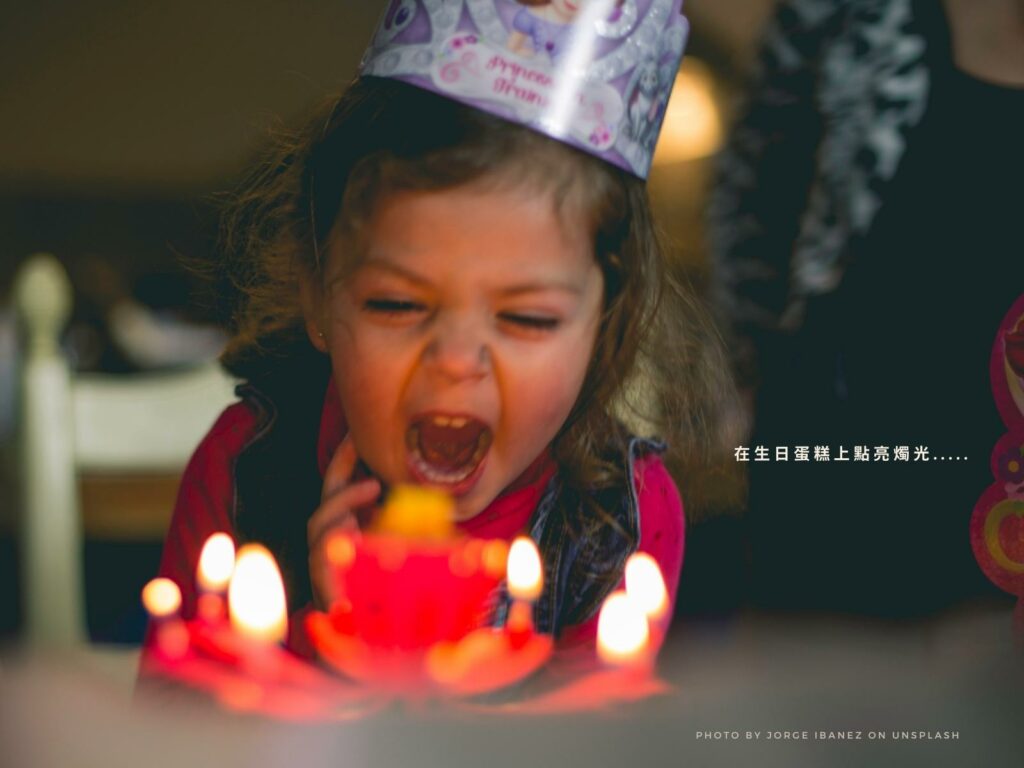 在生日蛋糕上點亮幸福的燭光……
