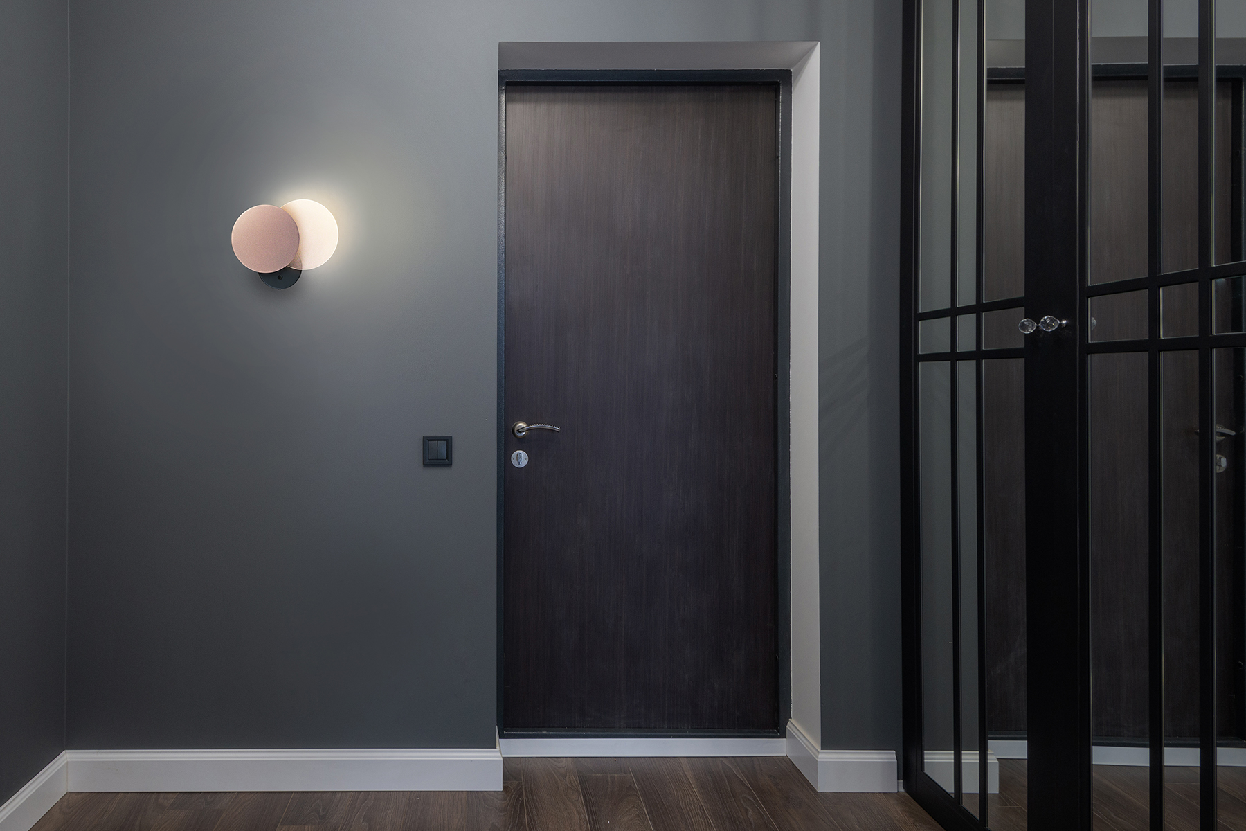 光板偏心設計,軸心在左光板向右旋轉,軸心在右光板向左旋轉,適合床頭或是鏡前的對稱裝飾。