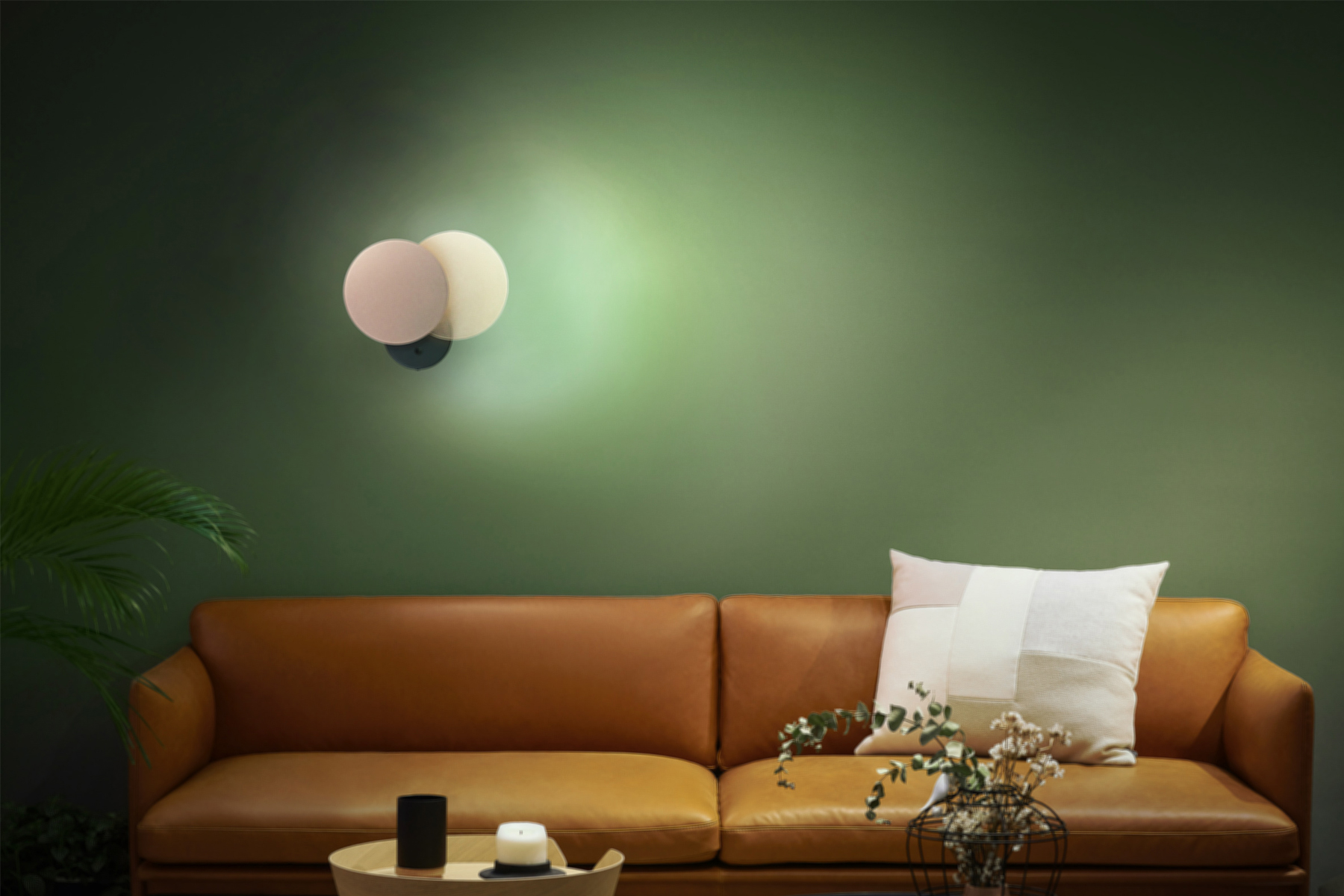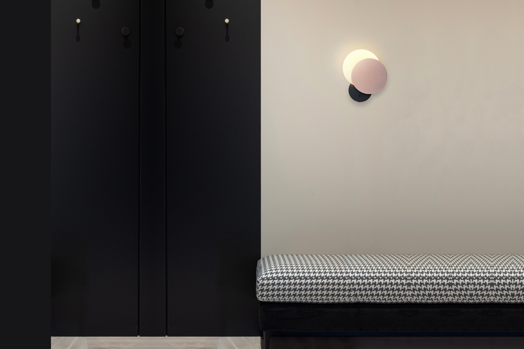 新月朦系列壁燈,燈板可100度上下旋轉出不同的弦月,呈現豐富視覺變化與光影效果。