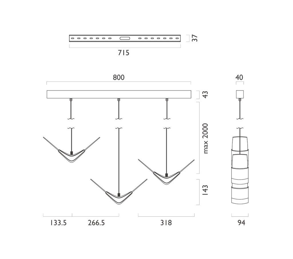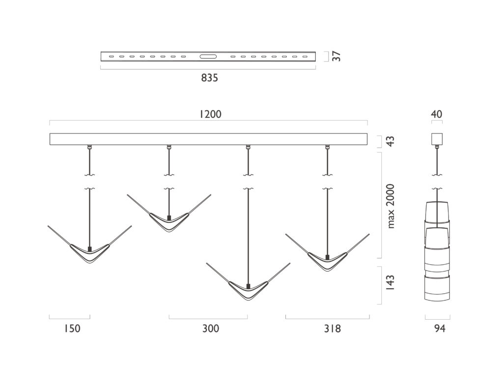 單盞⾃由排列、多盞組合配置,滿⾜不同空間量體的需求
