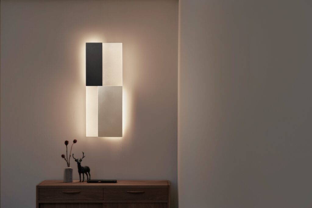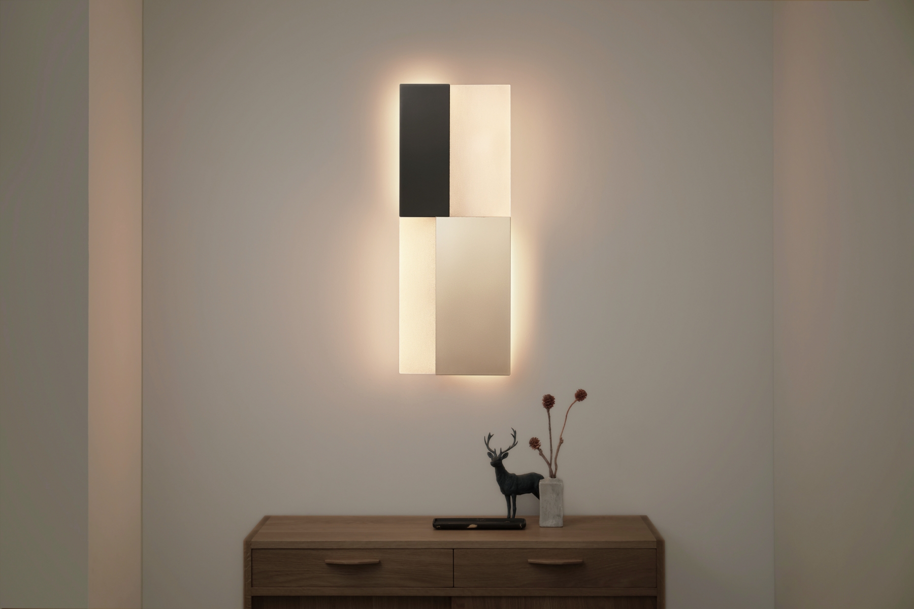 高低平板排列,薄型貼牆不影響空間動線,可為玄關、廊道、梯間創造景深,自帶光成為吸睛的焦點。