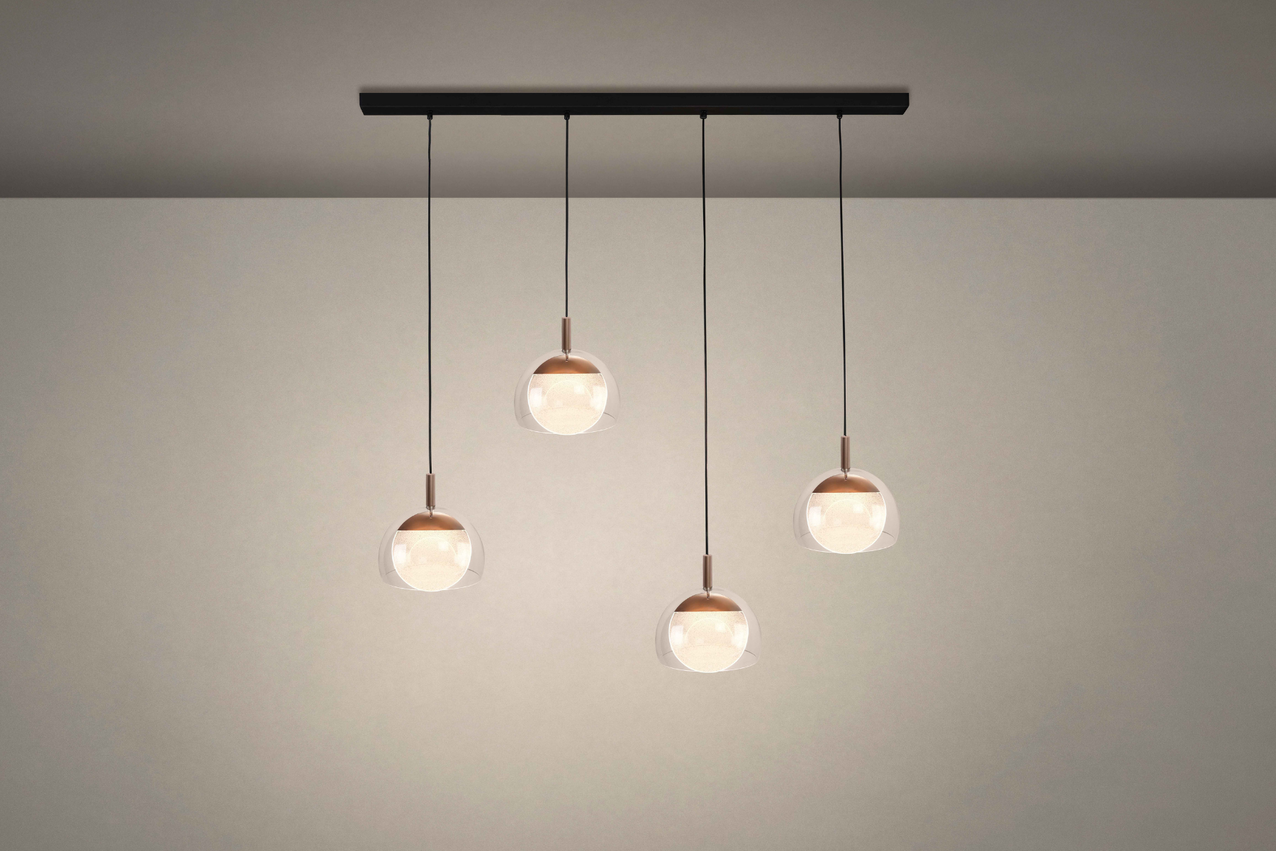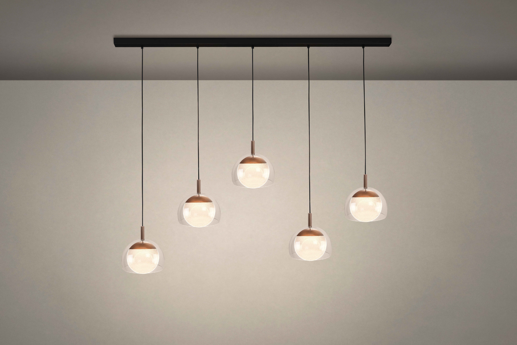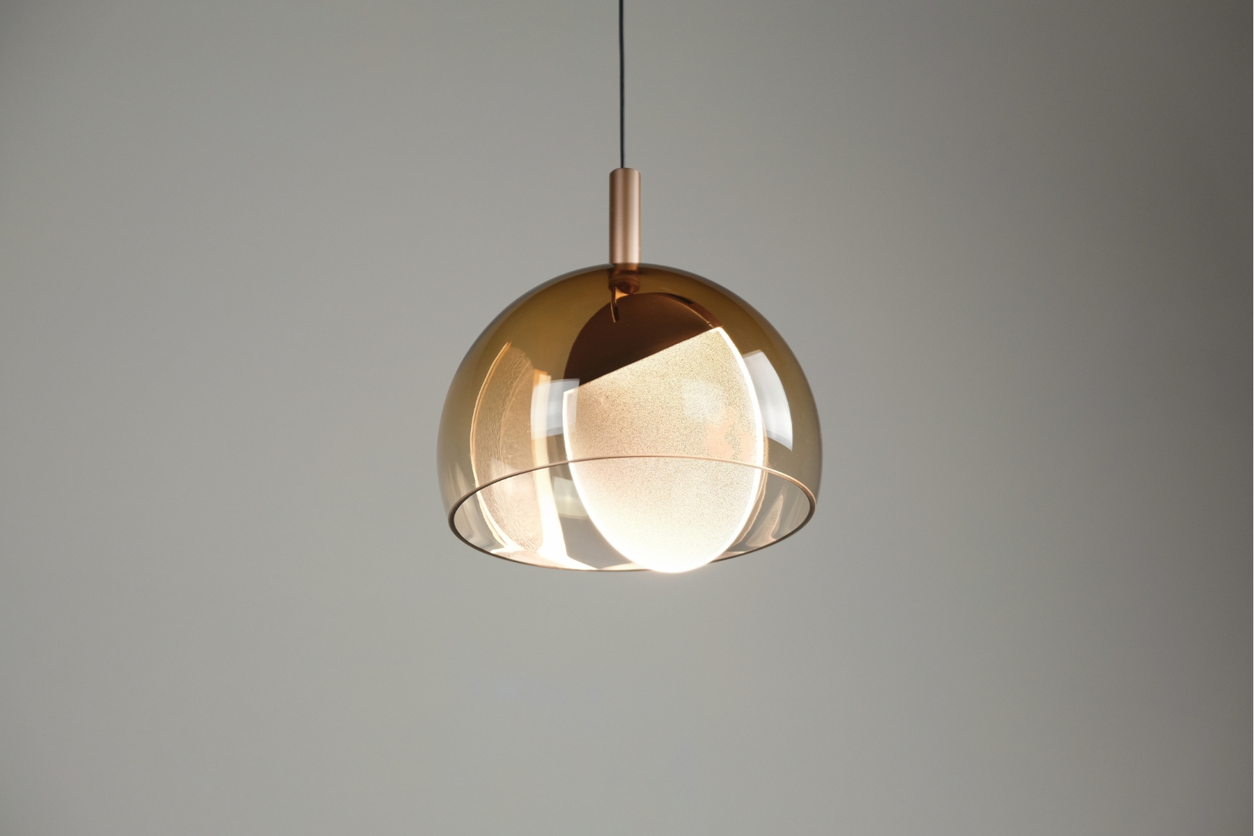 手工口吹玻璃塑造每一個燈體的獨一,將導光板特殊的面光源來回反射出豐富多樣、真假虛實交織的光環。
