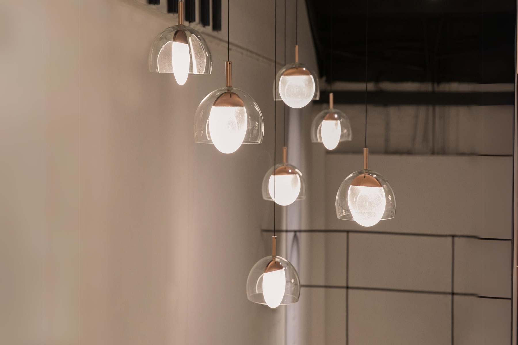 圓潤可愛的外型,傳遞溫暖愉悅、會心一笑的療癒能量。可依空間訂製燈體數,呈現數大的燦爛。