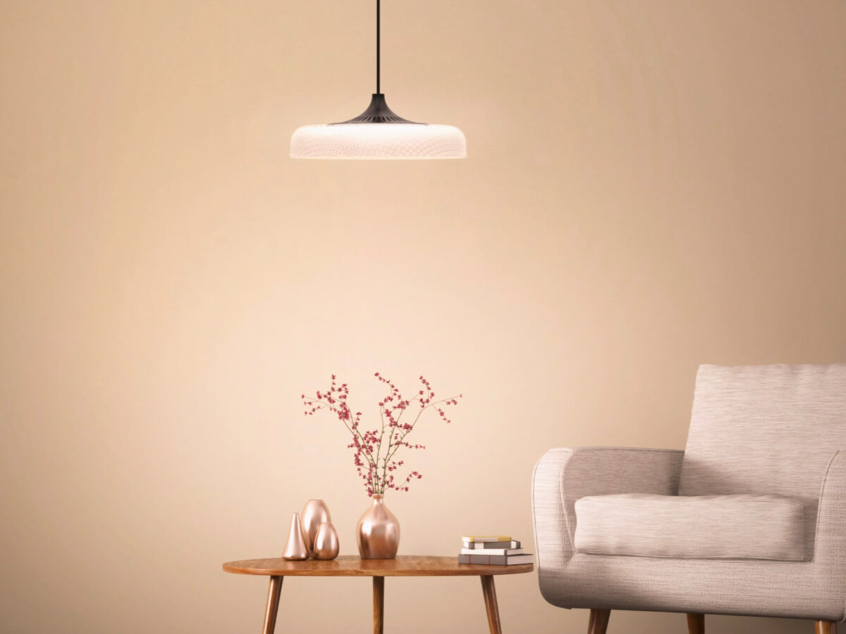 無燈泡的發光燈罩散發出柔和不刺眼不眩光的間接光。
