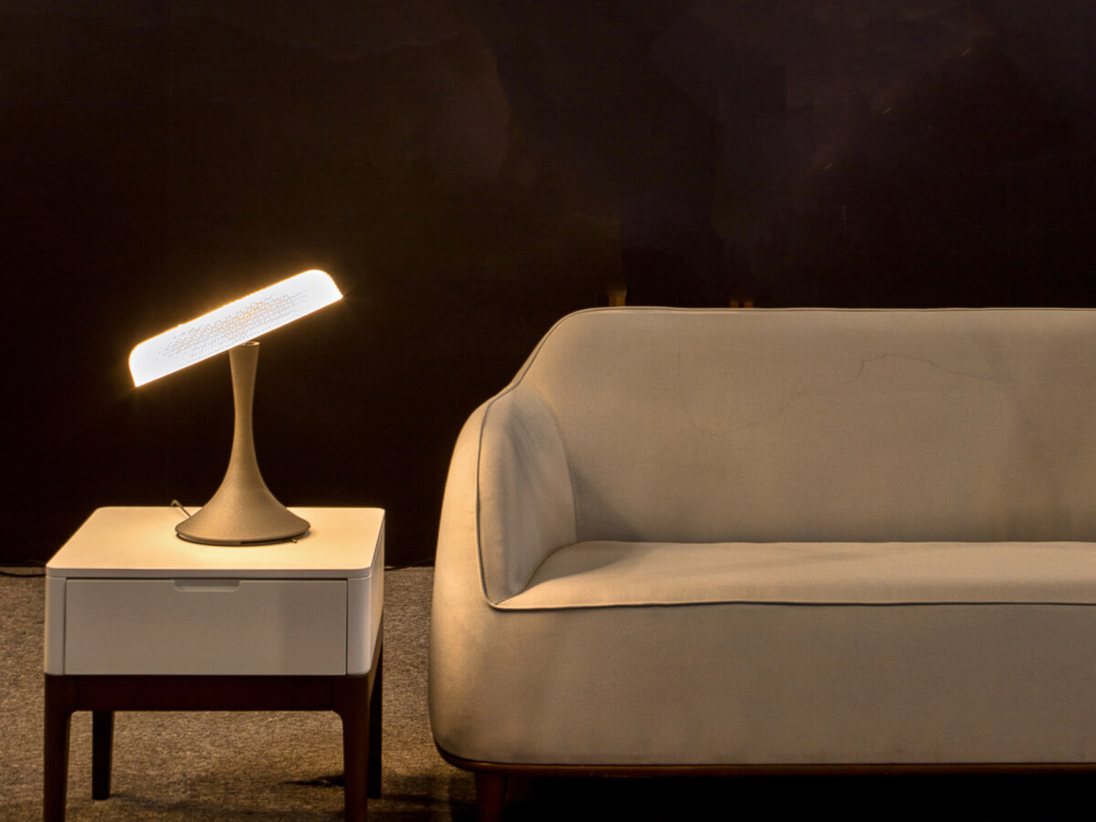 無燈泡的發光燈罩散發出柔和不刺眼不眩光的間接光。