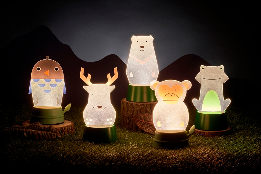 一系列充滿童趣的光,在入夜的夢鄉裡動物們正悄悄地聚在一起欣賞夜空。他們來自於不同的國度、高度與緯度,在這片草原上共享與同樂,一起譜出歡樂的派對時光。XcellentDesign透過設計,願環保從小紮根,節能、保護地球以及資源共享等概念透過一盞盞充滿趣味的夜燈,深植於孩子的心中。