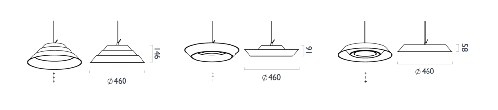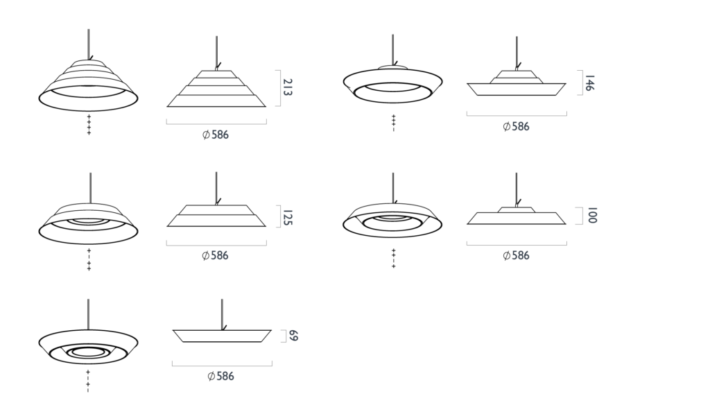 環狀堆疊,可向上或下放置創造不同的樣式,也可透過不同環數堆疊,可大可小,可依空間比例或個人喜好隨時變換,具運用彈性與安裝便利性。