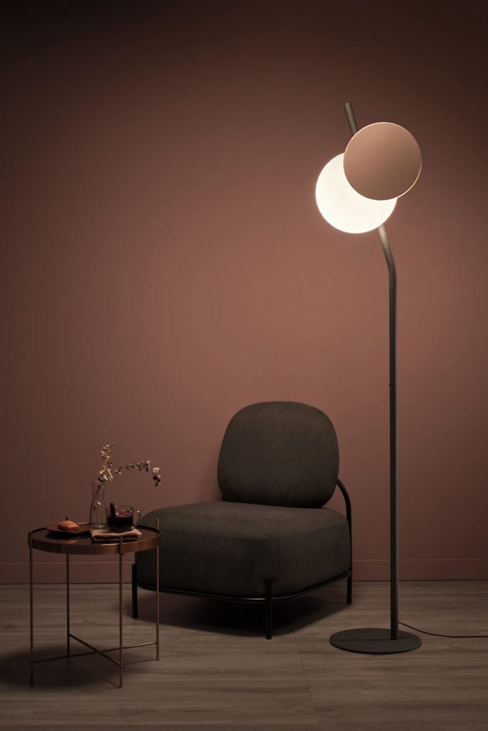 ♥︎新月落地燈,可調光與旋轉的光板以其不同的圓缺明暗,陪伴歷經一天陰晴的您。